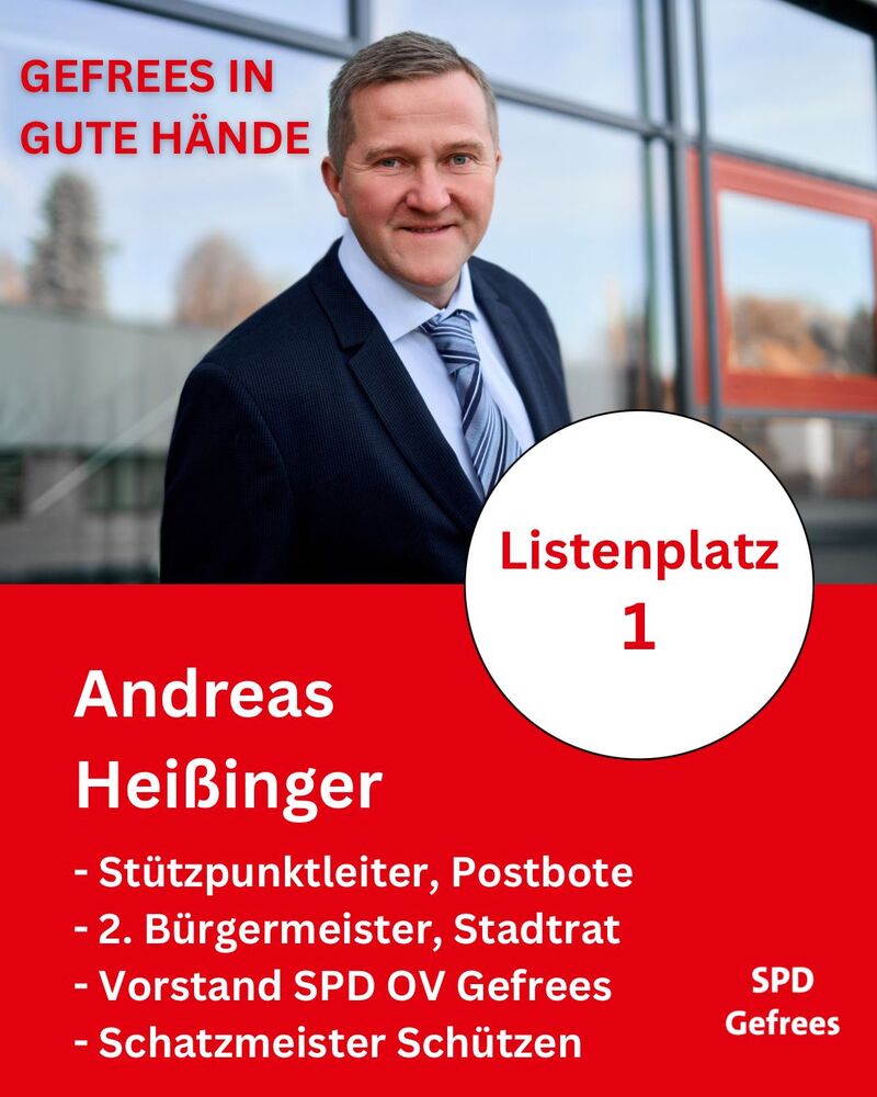 Platz 1 und unser Bürgermeisterkandidat ist Andreas Heißinger.