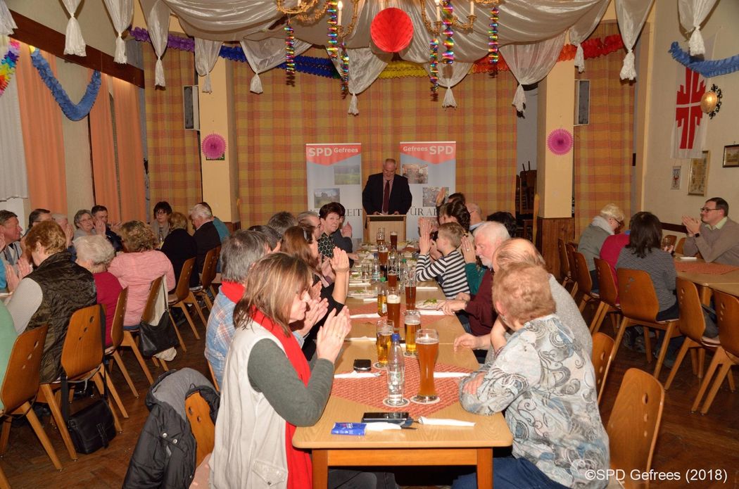 Zum diesjährigen Heringsessen konnte der Vorsitzende der Gefreeser SPD, Bernd Nelkel, knapp 40 Gäste im Volkshaus begrüßen. Neben dem 1. Bürgermeister der Stadt Gefrees, Harald Schlegel, war mit Torsten Gebhardt auch wieder der 1. Bürgermeister von Röslau als langjähriger treuer Besucher vor Ort. Vor dem politischen Teil des Abends konnten sich die anwesenden SPDler*innen zunächst an den gewohnt leckeren, selbstzubereiteten Heringen von Chefköchin Bärbel Hofmann stärken. Im Anschluss bereitete Bernd Nelkel dem für den Bezirksrat kandidierenden Holger Grießhammer die Bühne. Nach einer kurzen Vorstellung seiner Person kam dann natürlich auch gleich das aktuell unumgängliche Thema "GroKo" zu Sprache. Grießhammer bedauerte, dass trotz der guten Leistungen der SPD in den vergangenen Jahren, aber auch deren deutlicher Handschrift, die sich im Koalitionsvertrag wiederfände, die SPD es nicht schaffe, beim Wähler positiv wahrgenommen zu werden, vielmehr sogar es nicht schaffe sich selbst das mehr als gerechtfertigte positive Image zu geben.