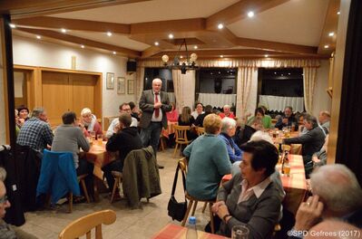 Zum diesjährigen Herbstessen hatte der Gefreeser SPD-Ortsverein ins Gasthaus Kornbachtal geladen, in dessen voll gefüllten Saal Vorstand Bernd Nelkel knapp über 40 SPDlerinnen und SPDler willkommen heißen konnte. Nelkel freute sich, neben Bürgermeister Harald Schlegel auch die Vorsitzende des Kreisverbandes Bayreuth-Land, Sonja Wagner und besonders die vor kurzem aus dem Stadtrat ausgeschiedene Sigrid Wenzel begrüßen zu dürfen. Er nutzte die Gelegenheit, um der langjährigen verdienten Genossin Wenzel noch einmal persönlich seinen Dank für ihr vielfältiges Engagement auszusprechen. Nelkel hob darüber hinaus aber auch die Leistungen des gesamten Ortsvereins hervor. Er freue sich, einem aktiven Verein vorstehen zu dürfen, der über das Jahre hinweg wieder mehrere Veranstaltungen erfolgreich gestemmt habe und somit eine wichtigen Beitrag im Gefreeser Leben spiele. Im Anschluss konnten sich die Gäste zunächst an einem feinen Abendessen stärken, bevor noch drei Ehrungen für langjährige Mitglieder anstand. Im Anschluss entwickelte sich ein launiger Abend mit allen Beteiligten.